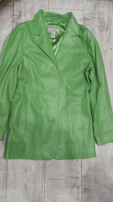 шкіряний піджак салатового кольору, розмір 46-48, груди 90, довжина 73