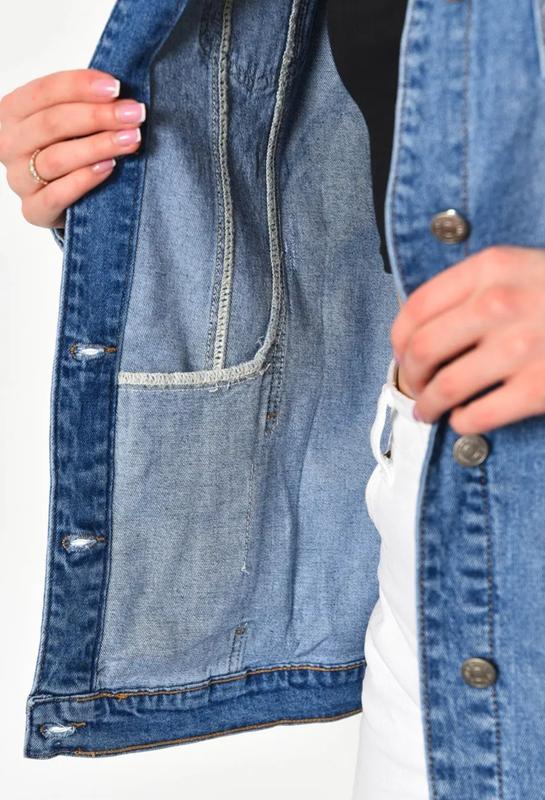 Подовжена джинсівка оверсайз з вишивкою джинсовий піджак жакет
