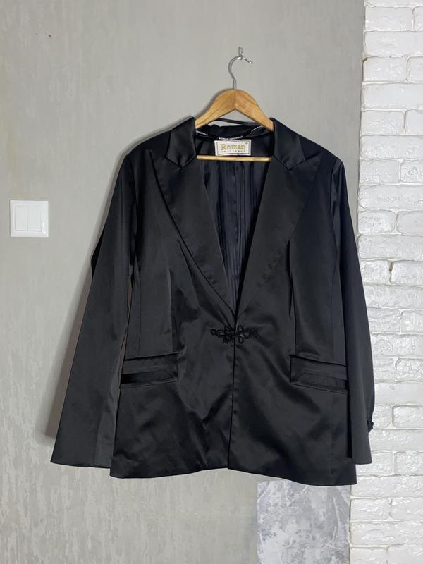 Шикарний вінтажний піджак атласний жакет великого розміру батал Roman Originals, XXXXL 56р. Довжина 75см, рукав 66см, плечі 46см, ПОГ 60-64см, ПОТ 54см, ПОБ 60-67см