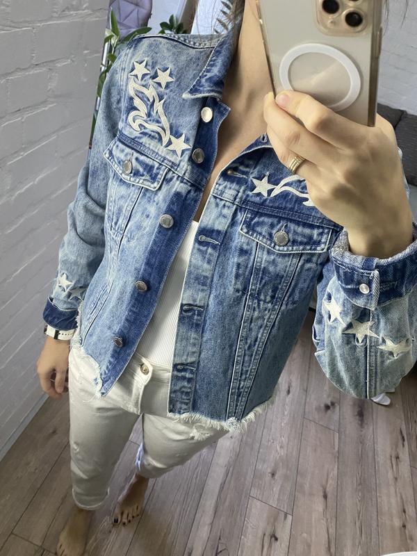 Стильна джинсовка з вишивкою, підійде на розмір с і м. Заміри на фото, довжина рукава 60. В чудовому стані.