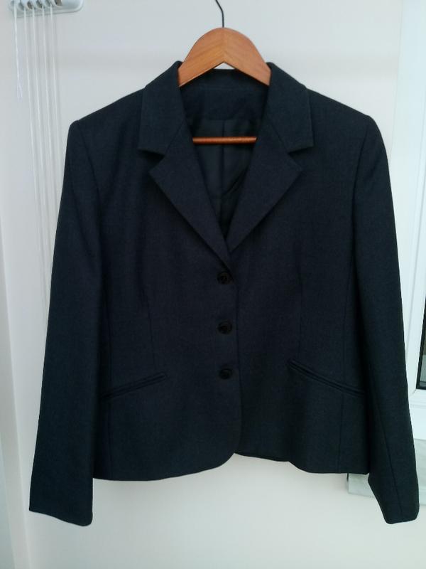 піджак темно-сірого кольору в ідеальному стані розмір s-m(вказаний uk 12) плечі-41см. ,пог-50см.,побіди-54см,довжина-64см. дл.рукава-61-45см.