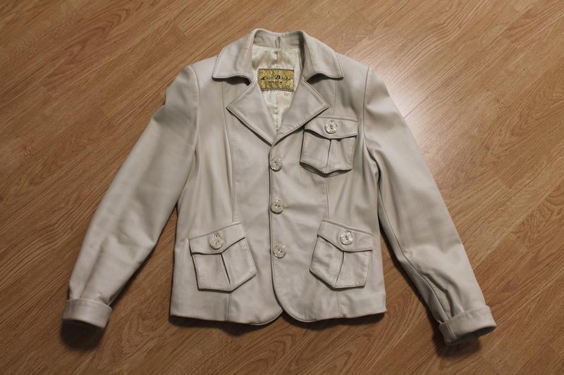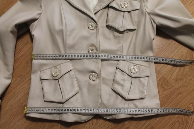 Шкіряний піджачок молочного кольору ,Італія, стан ідеальний, жодних дефектів немає. заміри є на фото. Перешлю НП або укрпоштою.