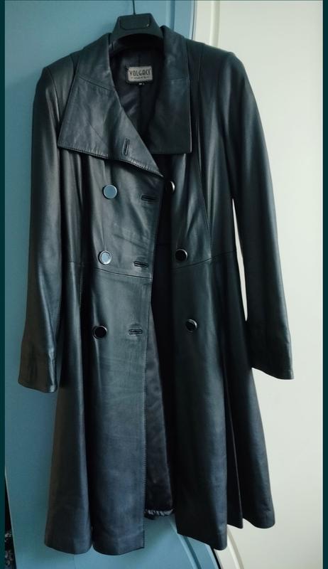 Чорний плащ з натуральної шкіри. Новий. Ні разу не ношений. Купила до вагітності, а тепер не влізаю( Розмір М. Має 2 положення коміра: v подібний або стійкою. Рукава теж можуть бути з або без закоту. На ґудзиках. Від талії розкльошений. Гарна модель. Не пожалієте придбавши його. Додаткові заміри і фото можу зробити. Віддаю дешево, щоб просто не займало місце в шафі)