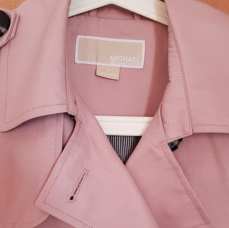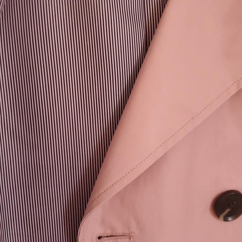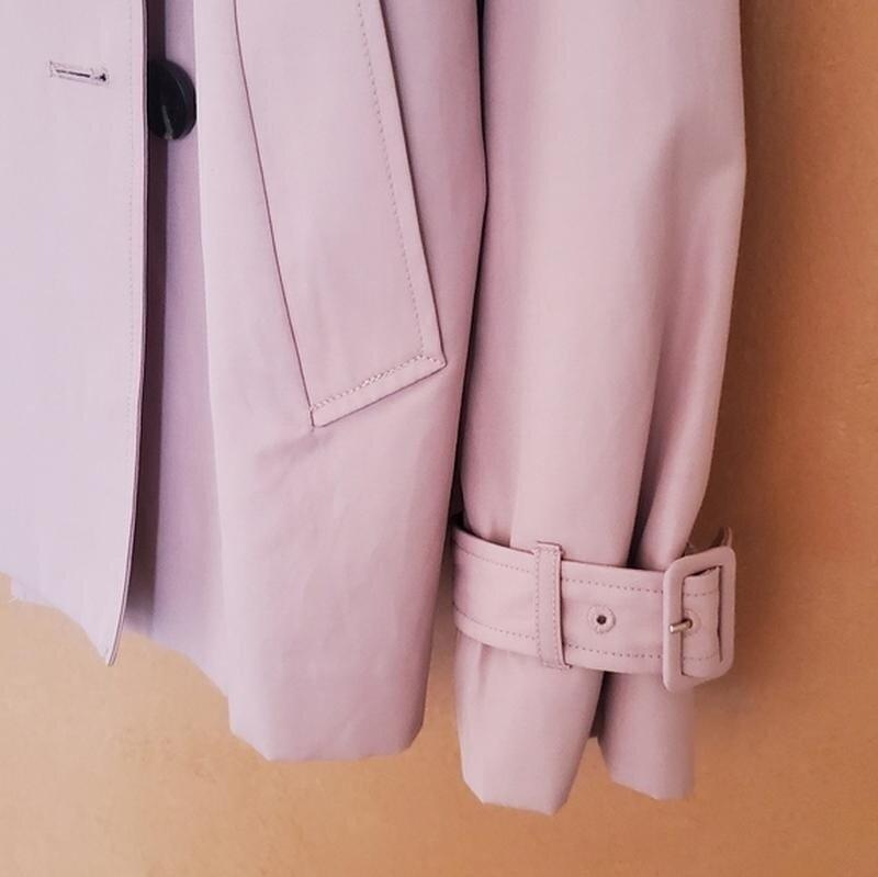 Двобортний тренч зараз у тренді та залишиться в тренді ще надовго. Він прекрасно замінить вам вітровку на демісезон. Гарний палево-рожевий колір. Застібається на ґудзики.