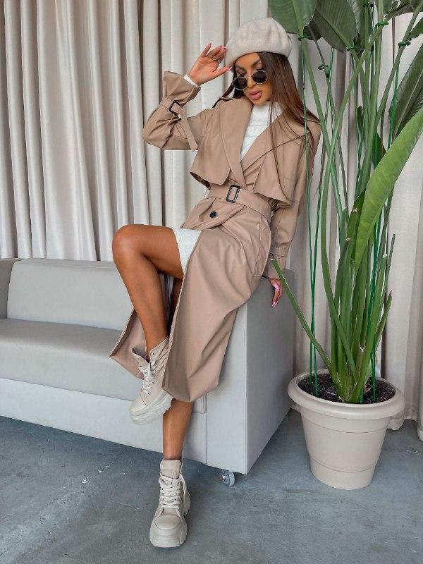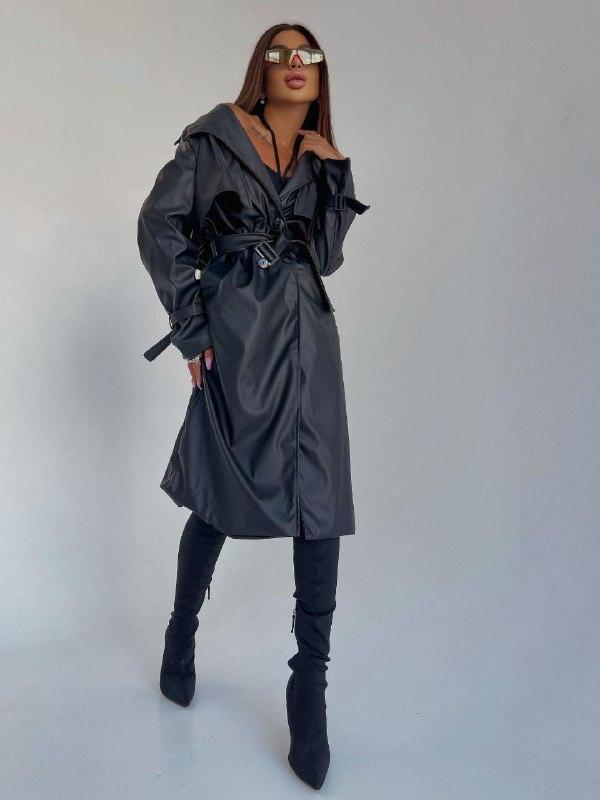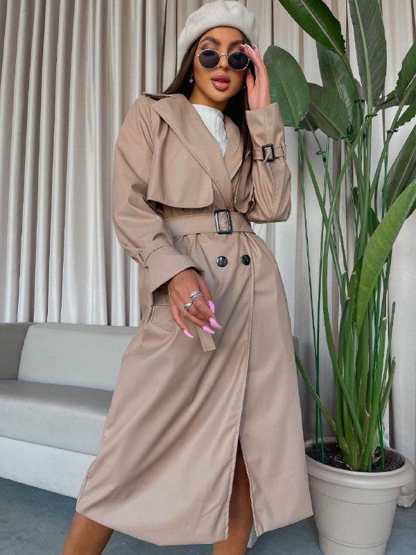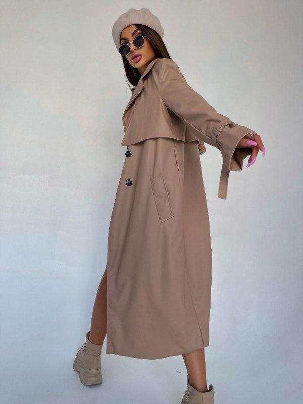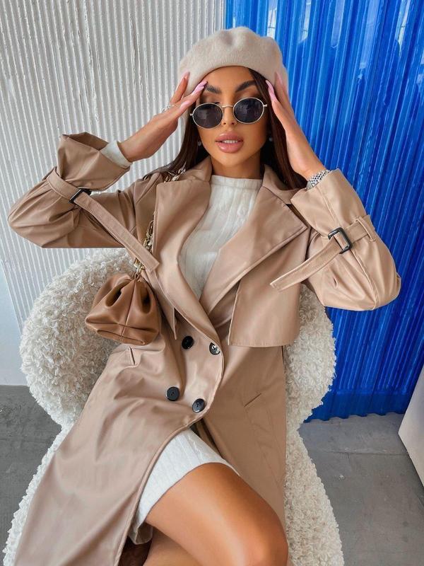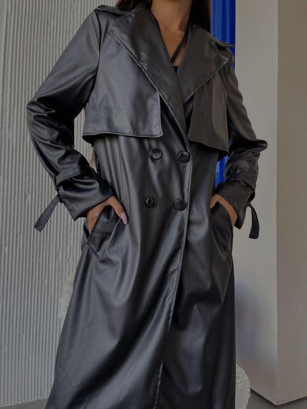 Жіночий шкіряний плащ тренч з поясом З ПІДКЛАДКОЮ Весна/Осінь 42-44,44-46 Екошкіра Довгий Нижче колін з гудзиками Пальто Куртка Осіння