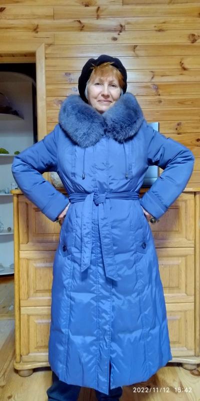 Рукав с поодворотом 64, рукав развернутый 71, плечи 46,5, длина 116, пог поверху 52, пот поверху 49, поб 56 поверху, .наполнитель- пух, перо; с