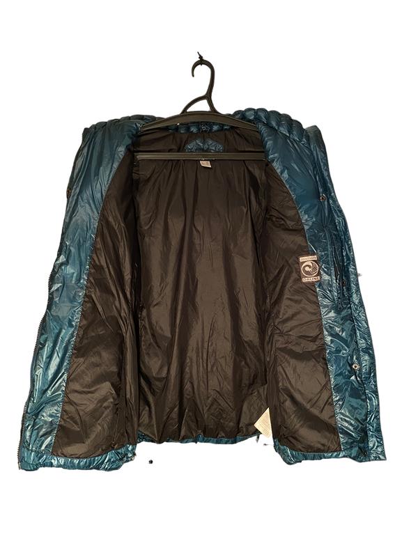Оригінальний пуховик від бренду salewa, дуже теплий та легкий! Набивка 90% гусиного пуху та 10 % пірʼя! З нюансів на кінцях рукавів потягнулися нитки.