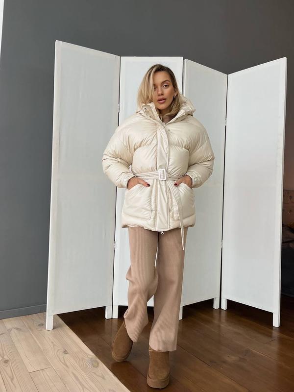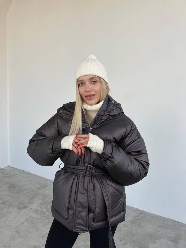 💎Пуховик об’ємний з поясом із преміальної тканини