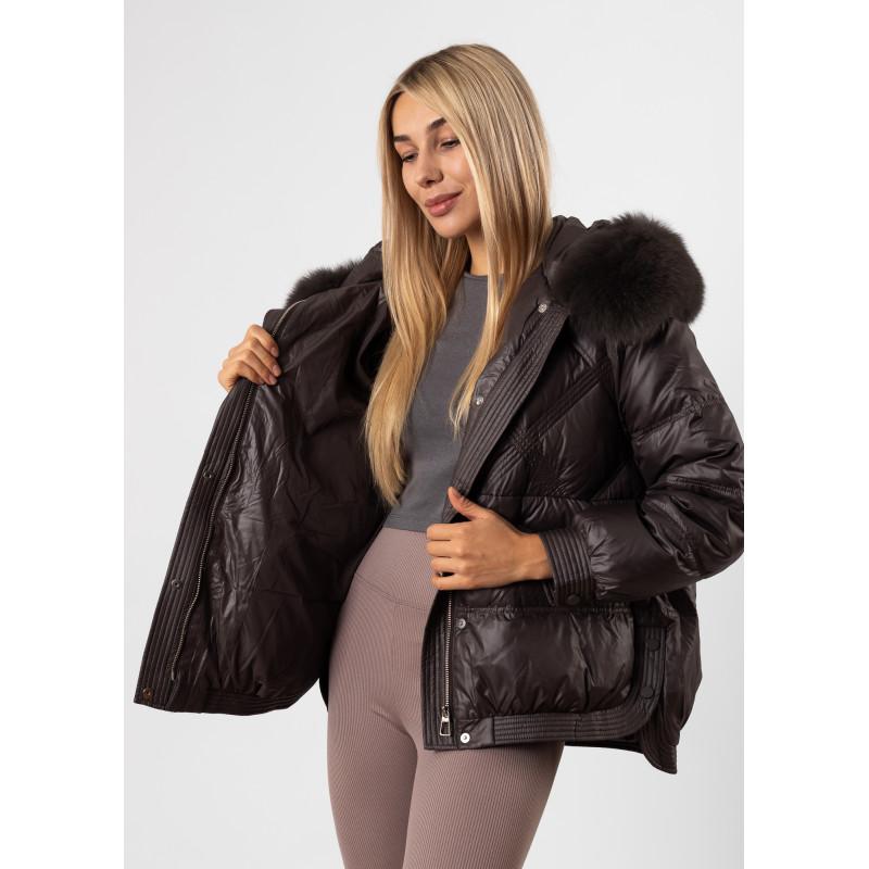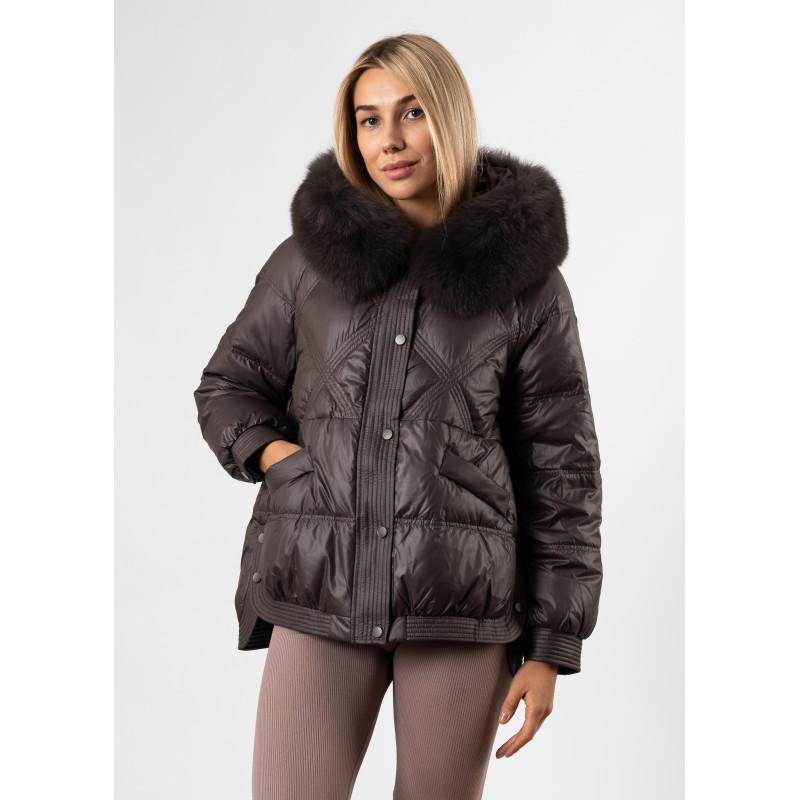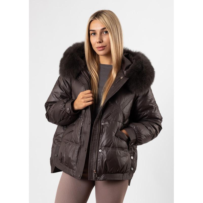 Жіночий пуховик темно-сірий короткий з натуральним пухом к821-в