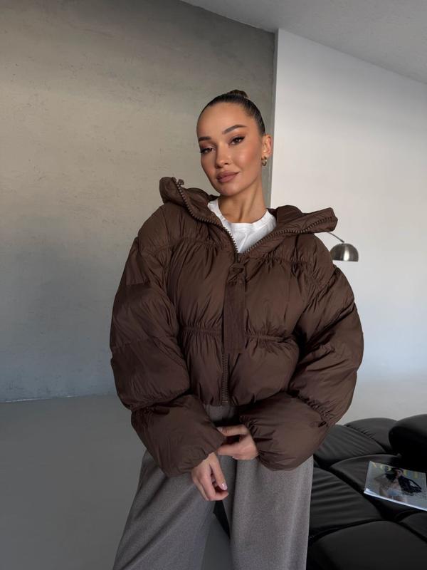 Пуховик модель " зефірка" Арт. 950 Ніжний та легкий на дотик пуховик. Легка та якісна верхня тканина, наповнювач 90% пух, 10% перо. Якісна фурнітура Чудово підійде до любого стилю. Розмір оверсайз Колір, молочний, сірий , шоколад ----------------------- Бюст - 55 см Рукав від горловини - 75 см Довжина - 53 см Кара