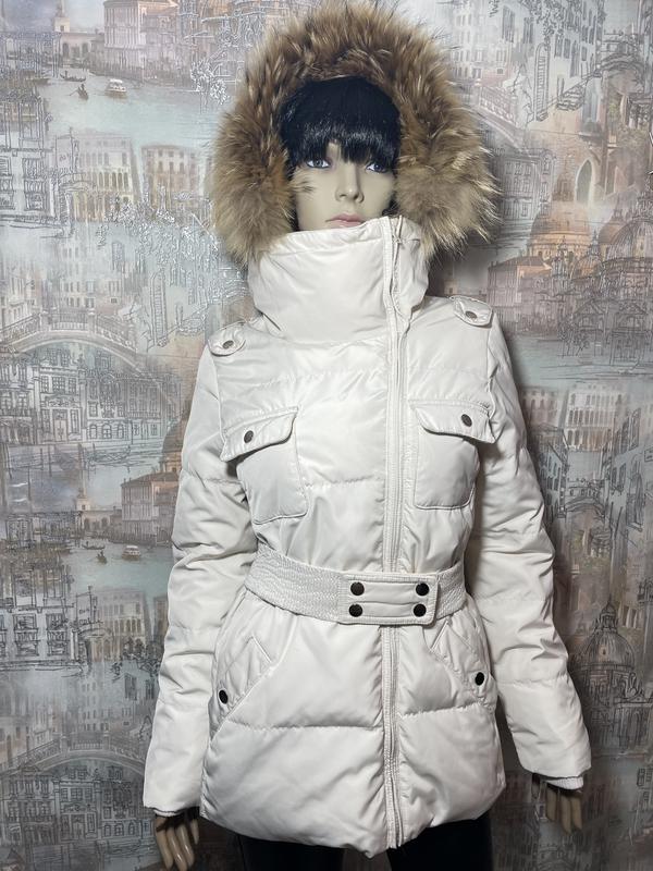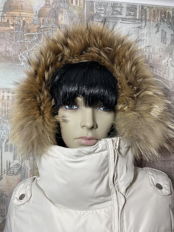 В ідеальному стані після хім чищення Каптур знімний Наповнювач пух Підійде на груди до 90 см Довжина від шва шиї ззаду без коміра до низу 69 см попу закриває повністю )