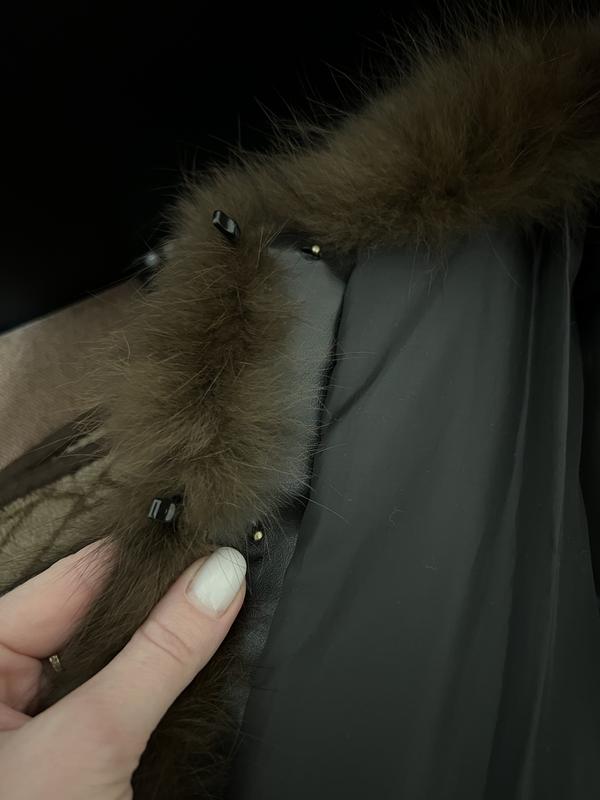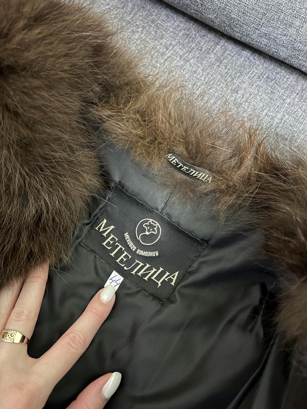 Шубка,гарна,тепла.Лисиця та вставки шкіри,рукав 7/8,має 2 кармани,7 петельок для застібання,всі робочі. Одягалась декілька разів ,розмір 44,але реально на 42 (xs)буде ідеально,фірма Метелиця