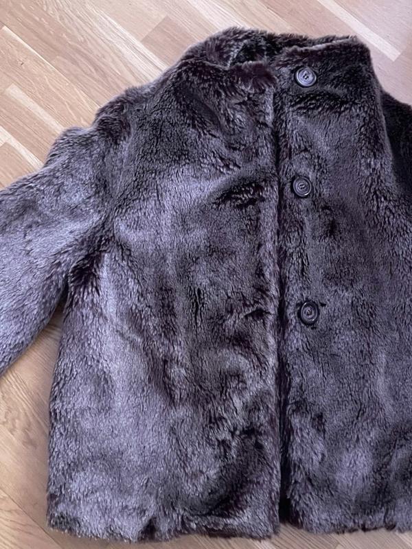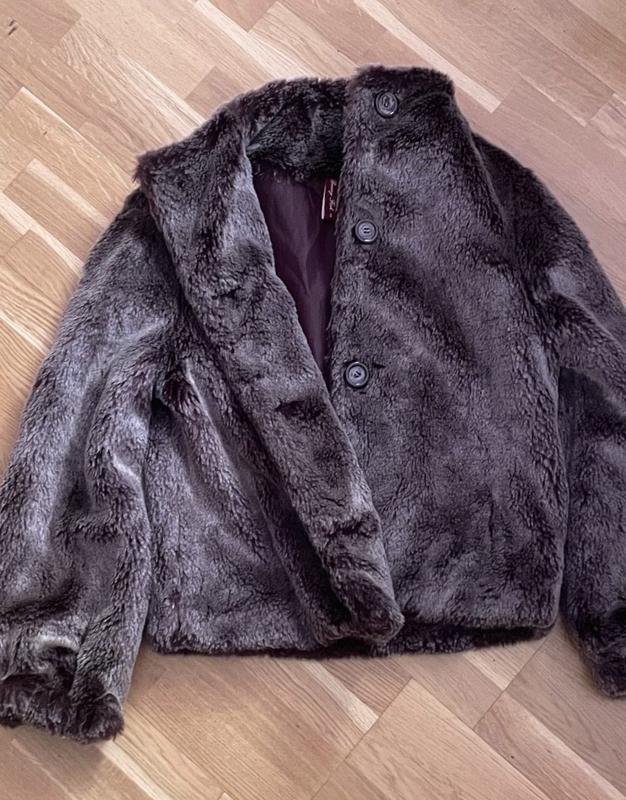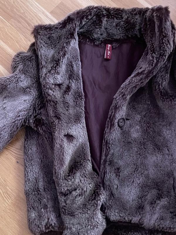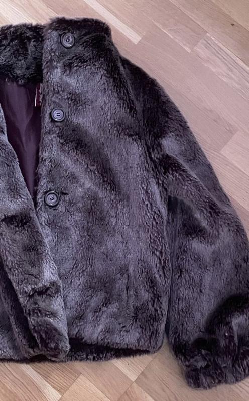 Коротка шубка з штучного еко-хутра.Розмір: S. Колір дуже гарний, сірий з відтінком фіолетового. Камера повністю не передає, переливається, з сріблястим напиленням кінчиків ворсу. Стан нової.