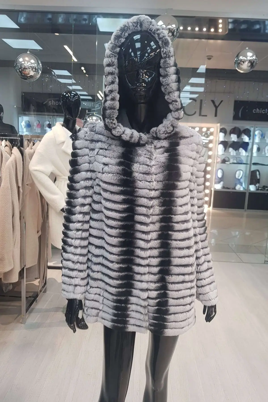 Кардиган з хутра шиншилового кролика зі знімним капюшоном