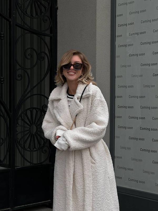 Тепла еко-шуба з пояском 🕊️
