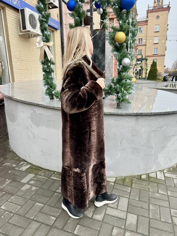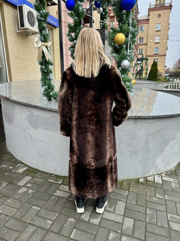 Шуба женская из мутона длинная коричневая тонированная с норкой и
