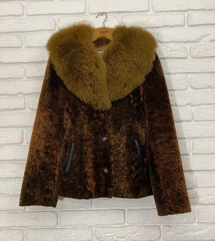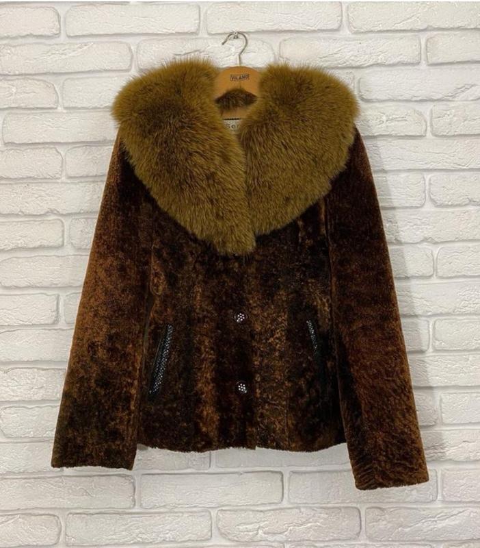 Неймовірна італійська шубка автоледі з натурального хутра астрагана (мутон, тільки м'який і легкий). Комір — натуральний песець, густий, має дорогий вигляд. Дуже легка та тепла. Круто виглядає також під ремінь.