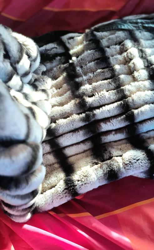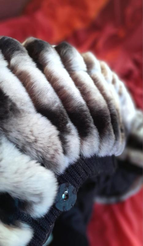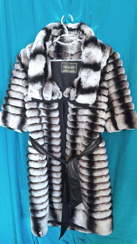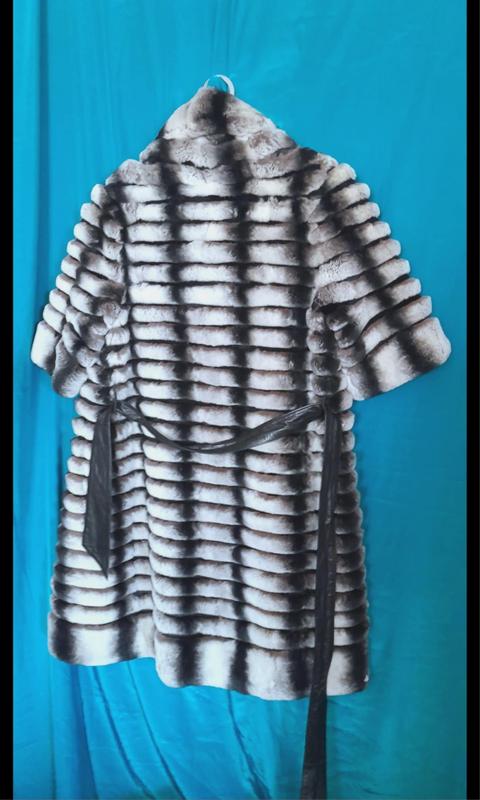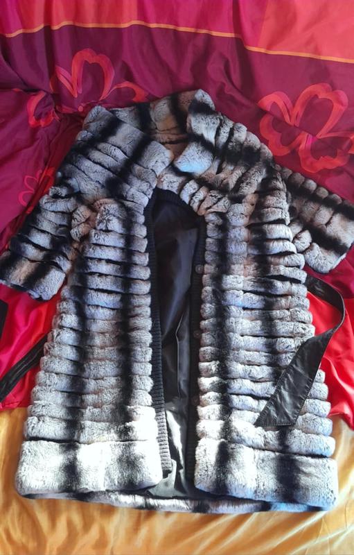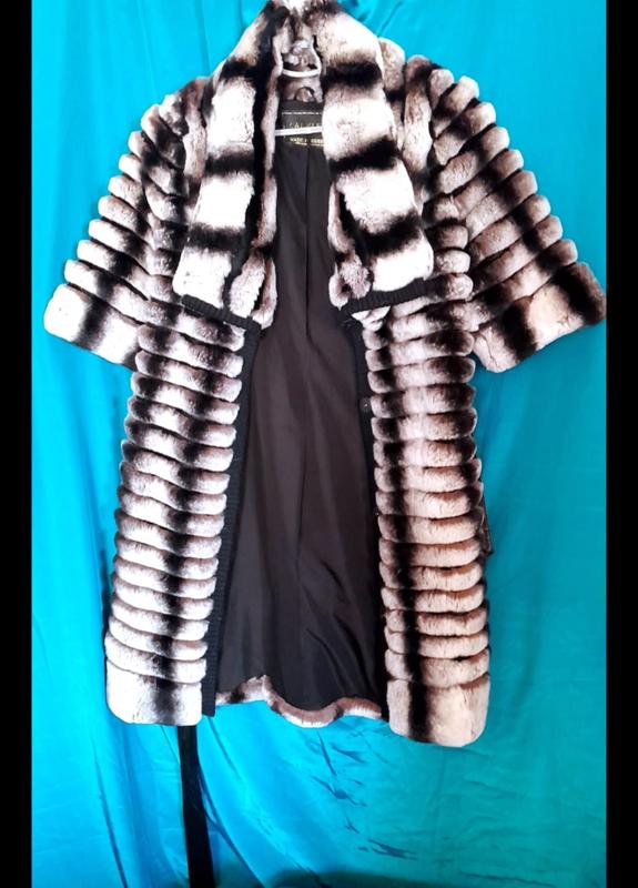 Хутро міжує стріжена норка чорними смужками між хутром шиншили. На шубі вся фурнітура робоча. Дизайнерський витвір мистецтва, дірка на фото, виробництво Греція.