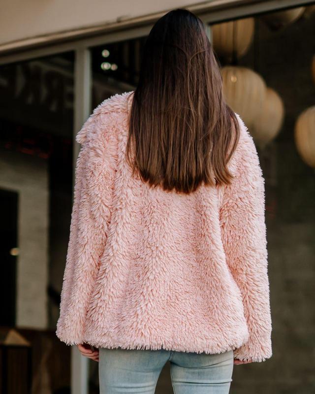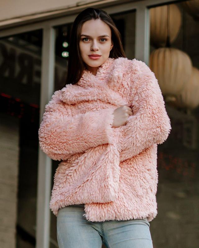 Розовый полушубок женский