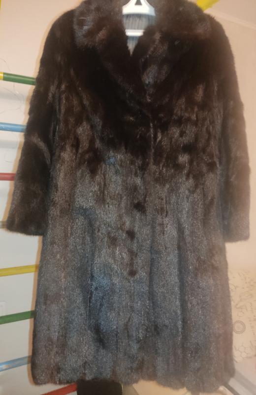 Норкова шуба на зріст 160 ±. до коліна. Поздовжній крій, міцна мездра, Практично без зносу. Колір темно-коричневий (кава міцного обсмажування) Хутро довгоосте, скандинавська норка з Німеччини, район Pelze. Підпущщя щільне, шуба дуже тепла Підкладка змінювалася, збережена лейба. Розміри: Довжина виробу — 100, Довжина рукава — 59, Плече -12, ПОГ-52, НОТ-56, ПОДОЛ-66, Шир. Спини — 58,. Можна застібати під горло (дод. Гачок) Можливість розширити на 2-3 см через переставлення гачків.