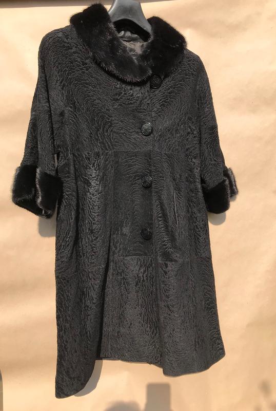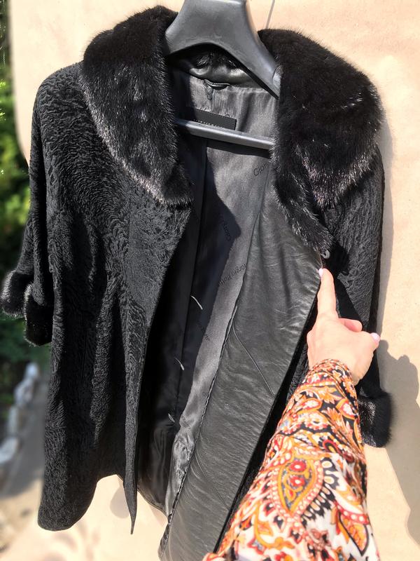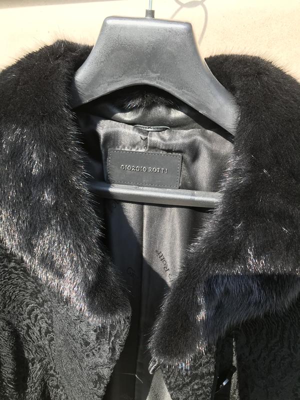 Шуба Giorgio Rotti. Модель тип Шанель. Виріб з хутра Каракульчі, комір та рукава оздоблені хутром Норки. Хутро Каракульчі робить виріб легким , теплим і разом з терморегулируемым. Розмір 44-46.