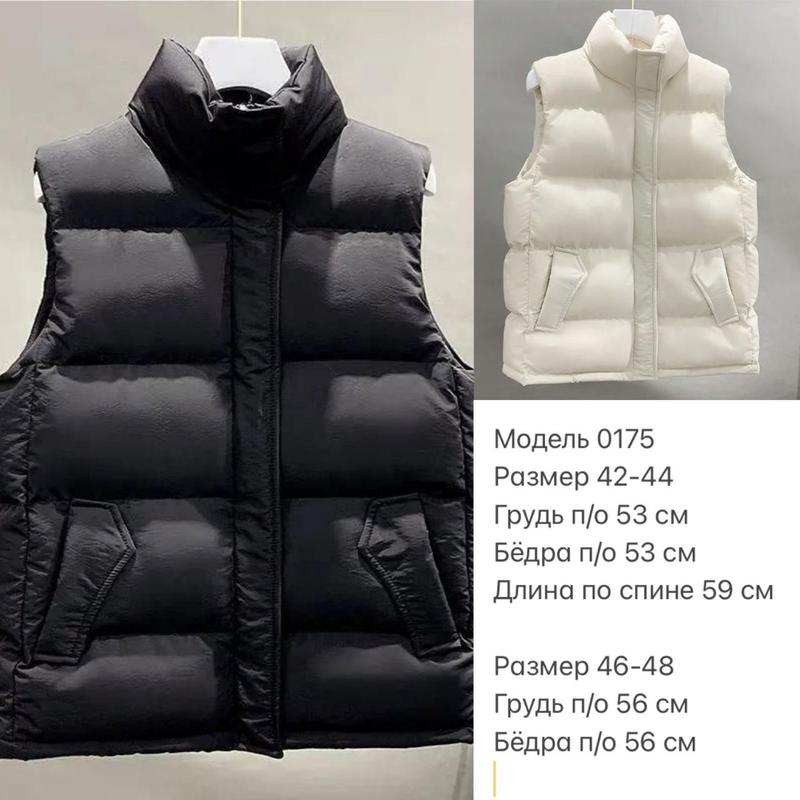 💥Жіноча ЖилеткаМодель 0175🌿Тканина: плащівка Канада матова Туреччина🌿Наповнювач Синтепон "200",щільна🌿Розміри: 42-44,46-48🌿Кольори: чорний, молоко
