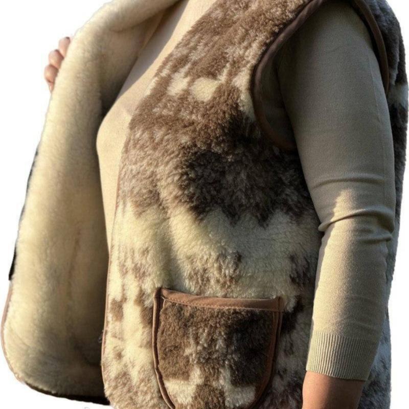 Жилетка з овчини подвійна з оленями, безрукавка з овечої вовни, вовняний жилет
