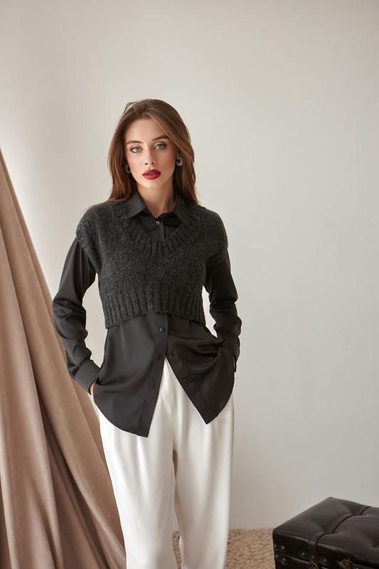 Укорочений жилет прямого комфортного крою з V-подібним вирізом горловини з