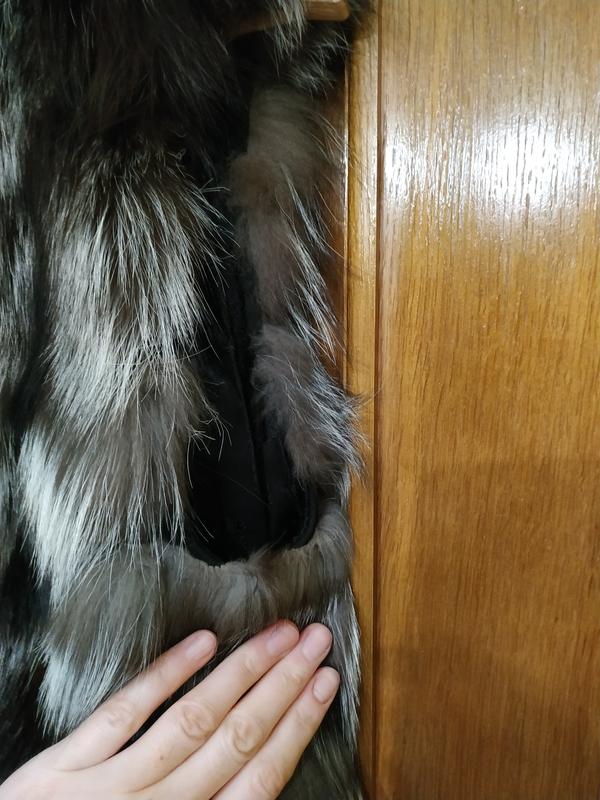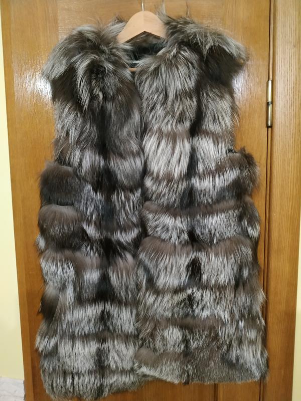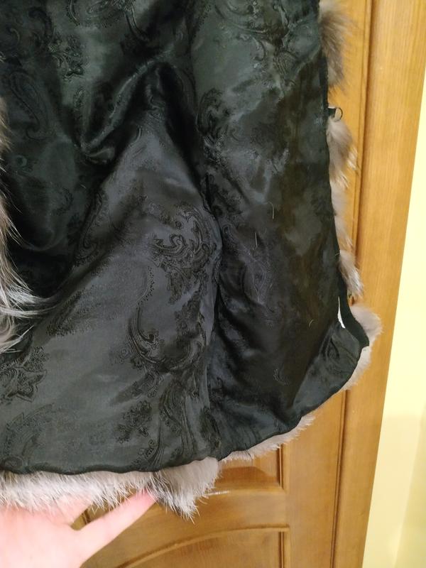 Це не Китай, пошив на замовлення в Україні. Шкурки пришиті на натуральний замш, по боках є 2 кармани. Носила зовсім мало і дефектів взагалі ніяких немає, підкладка не порвана. Довжина жилетки 80 см, об'єм в грудях не більше 90 см. Якщо потрібні додаткові фото запитуйте.