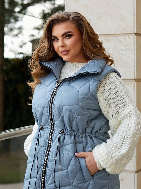 Стильний стьобаний жилет з резинкою на талії, без капюшона, якісна фурнітура.
