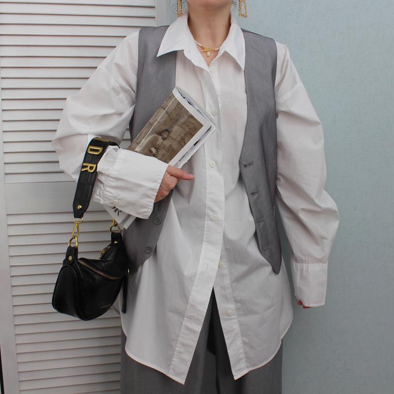 📜 - стильовий сірий костюмний жилет класичного крою🩶 дуууже крута штука, яка сильно міняє базовий образ в кращу сторону😍 міцна шовковиста тканина, є підклад ) стан супер