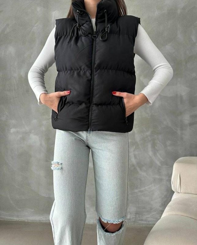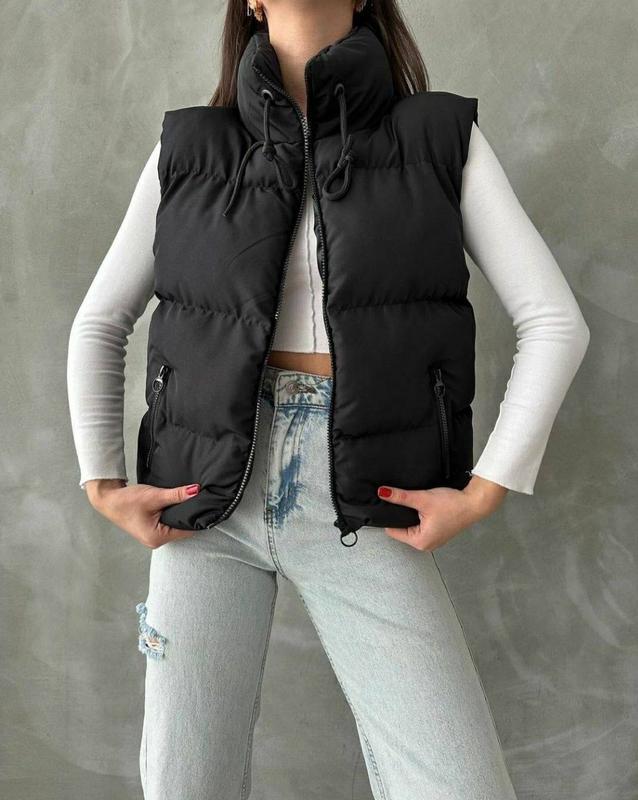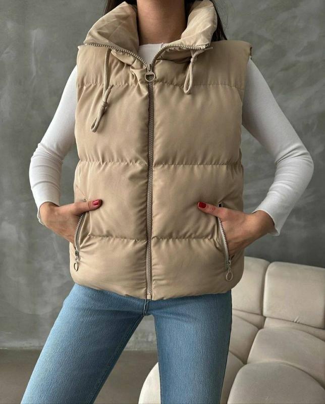 Жіноча жилеткаМодель 0560🔹Тканина: плащівка Канада матова Туреччина🔹Наповнювач Синтепон "200",щільна🔹Розміри: 42-44,46-48🔹Кольори: чорний,бежевий 🔹Ціна: 685 грн🔹Якісне пошиття 👍