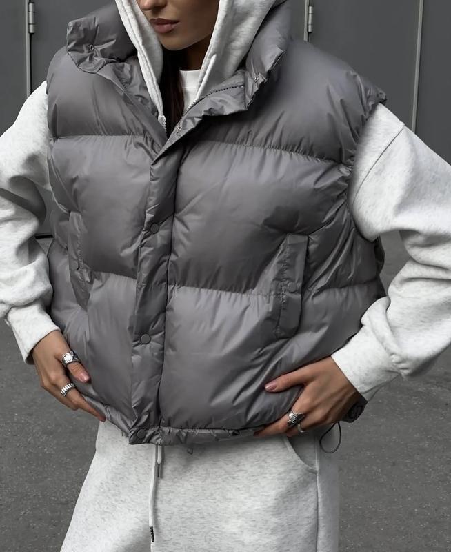 Жилетка на осінь або весну,сірого кольору,пухка та тепла Розмір універсальний(оверсайз)