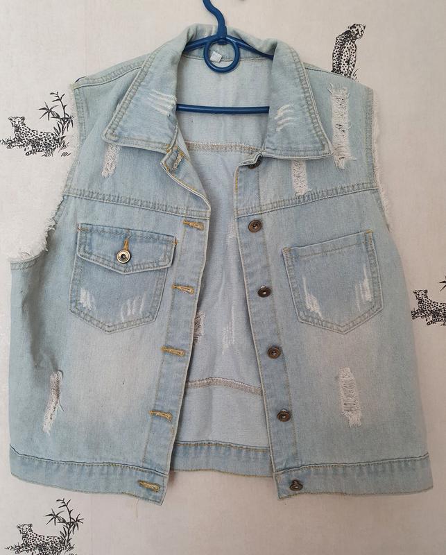 Нова джинсова жилетка,купила собі але мені не знадобилася розмір 42-44 гарний світлий джинс купила в ОЛКО
