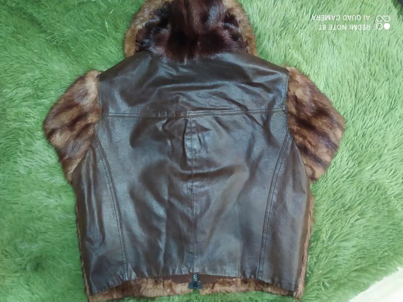 Ексклюзивна жилетка з польової норочки, колір під соболь, шили на замовлення. Стан відмінний, без потертостей і нюансів, одягалася кілька разів, на жаль стала мала. Хутро густий, блищить, спинка натуральна шкіра, хороша підкладка, така буде тільки у Вас! На зріст до 165 см по пояс. Виглядає дуже красиво!!! На наш 46-48. Довжина 48,ПОГ 49,ПІТ 45,плечі 50.