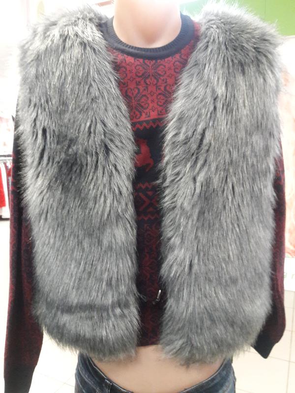 Хутряна жилетка. У відмінному стані. Позов. хутро дуже хорошої якості. На зав'язці. Пришила внизу гачок. Р-Р XL. Виміри в спокійному ( лежачому ) положенні: плече від ворота-11,5 см пройма - 22,5 см ширина під проймою - 49 см ширина внизу -50,5 см довжина по спинці -54 см довжина по боковому шву -30 см