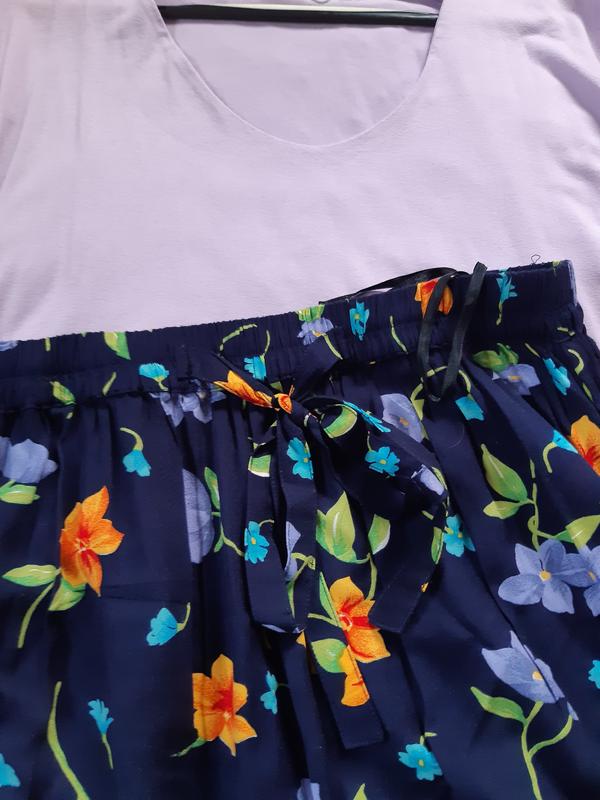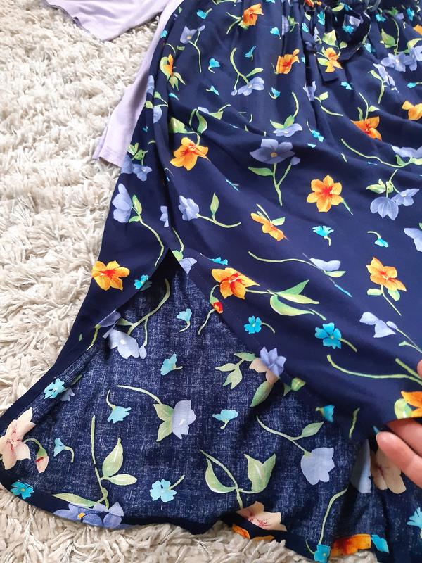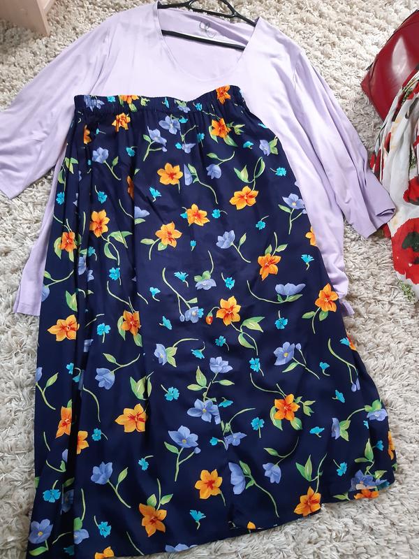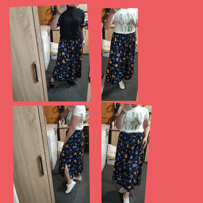Стильная комфортная длинная юбка в цветочный принт, талия на резинке, по бокам есть разрезы, ткань вискоза. Размер указан 44, на фото на 40 и рост 170ЗамерыПОТ 38-62ПОБ 78ДЛИНА 87