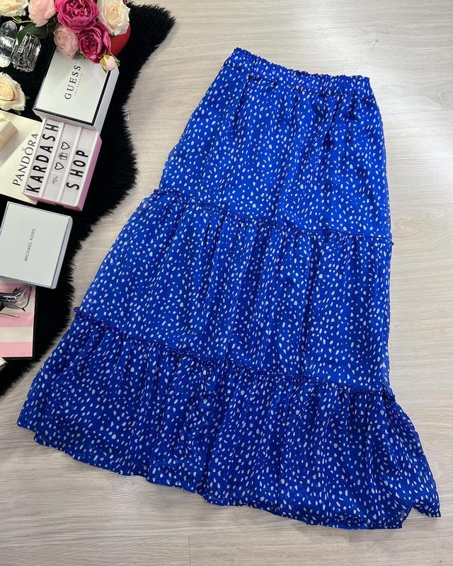 Спідниця, літня спідниця в голубому кольорі з квіточками на резинці.