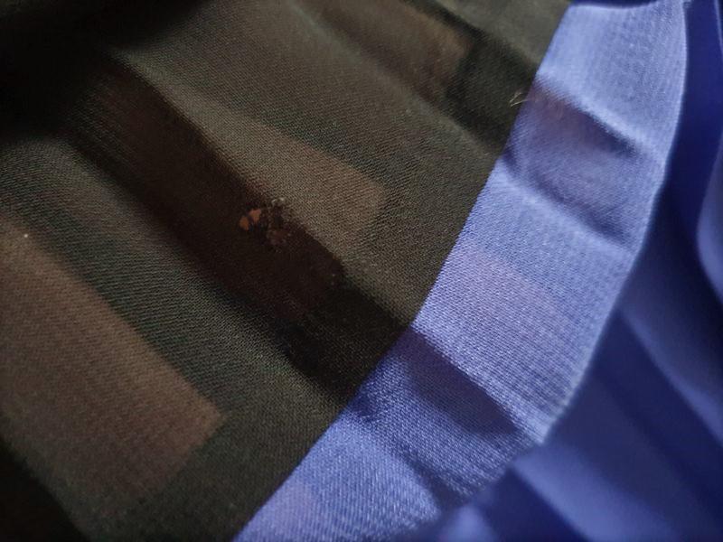 Ззаду на чорній смужці є дірочка розміром приблизно 5 мм, в носінні буде не дуже помітна. Дивіться останнє фото. Через це знижено ціну.