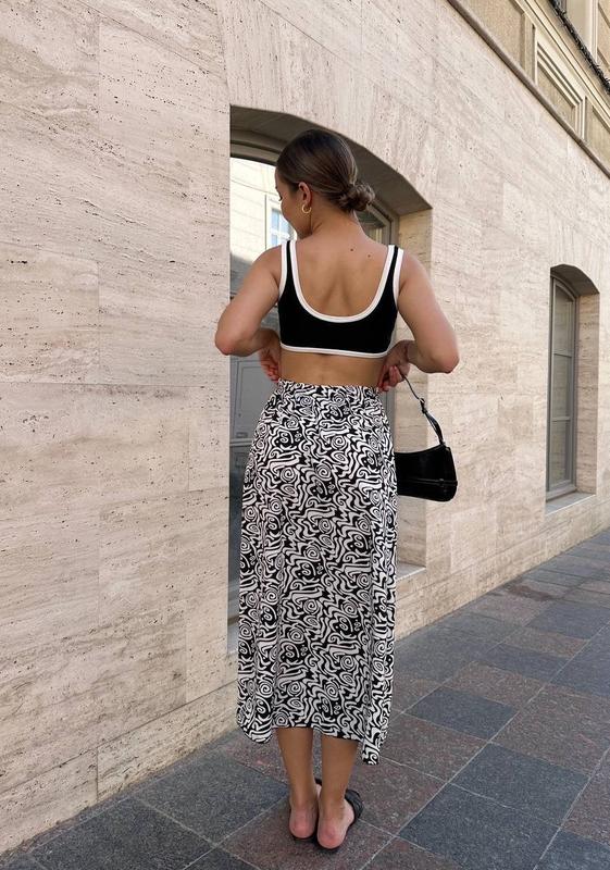 Максі спідниця з розрізом у чорно-білому принті🌸