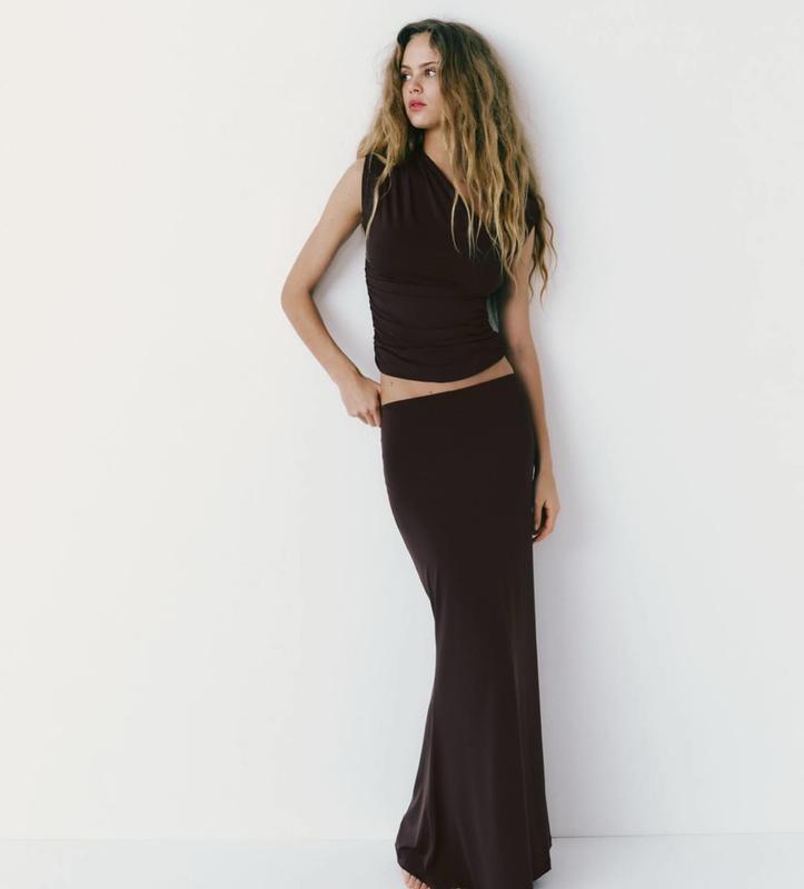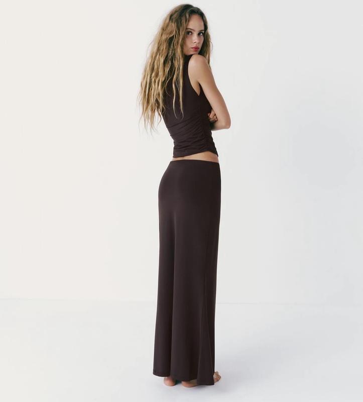 Довга шоколадна мінімалістична спідниця в стилі 90х Zara
