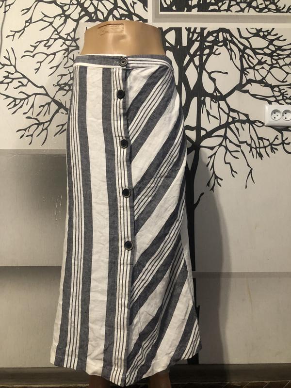 Спідниця на ґудзики спереду-53% льону. 47% віскоза.Смугастий принт Коктельний стиль босо
