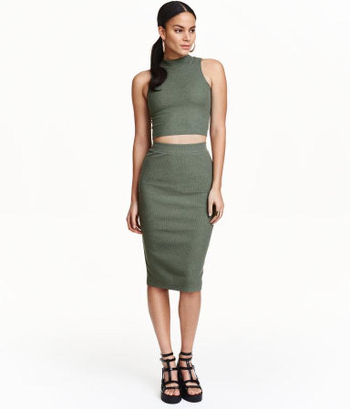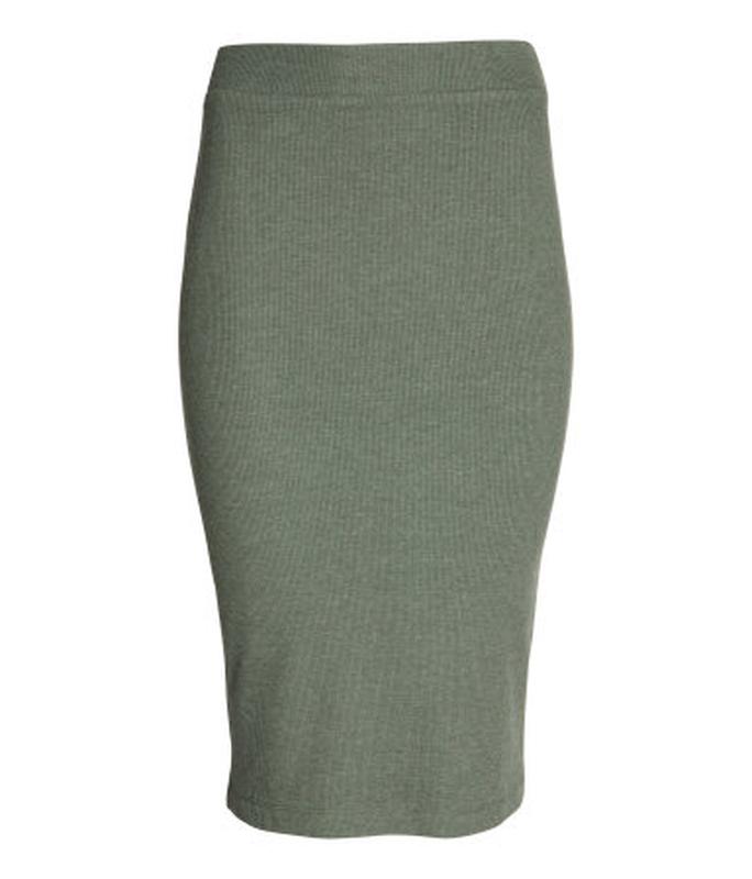Спідниця H&M Німеччина Модно кольору Хакі Розмір М європейський, підійде на стегна 96-102, в залежності як ви любите носити відмінно Тягнеться з-за складу! Тканина в рубчик. Не просвічується! Дуже хорошої якості з розділу DIVIDEN H&M BASIC В живу точно така, як на оригінальному фото! Реальні заміри в НЕ розтягнутому стані: Довжина - 68см По талії - 34см, розтягується до 45см Ширина спідниці на рівні стегон - 40см, розтягується до 56см