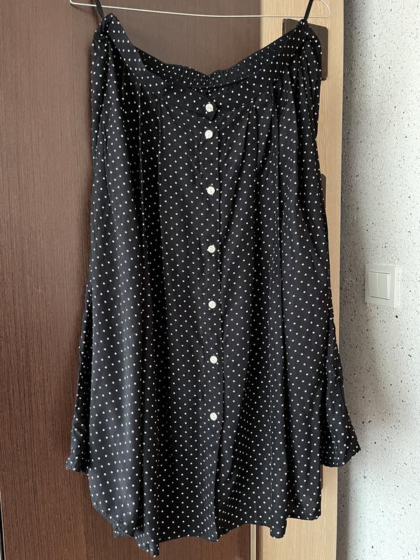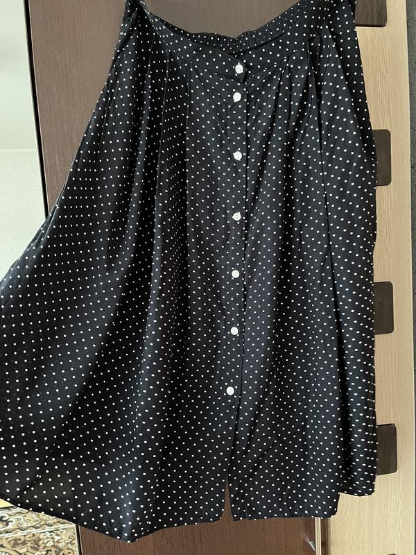 Спідниця міді Marks&Spencer темно-синього кольору в дрібні крапочки(квадратики) на ґудзичках спереду. Є додатковий ґудзик. Ззаду на резинці. Розмір UK 16, EURO 44, L-XLДодаткові заміри скину в повідомлення.