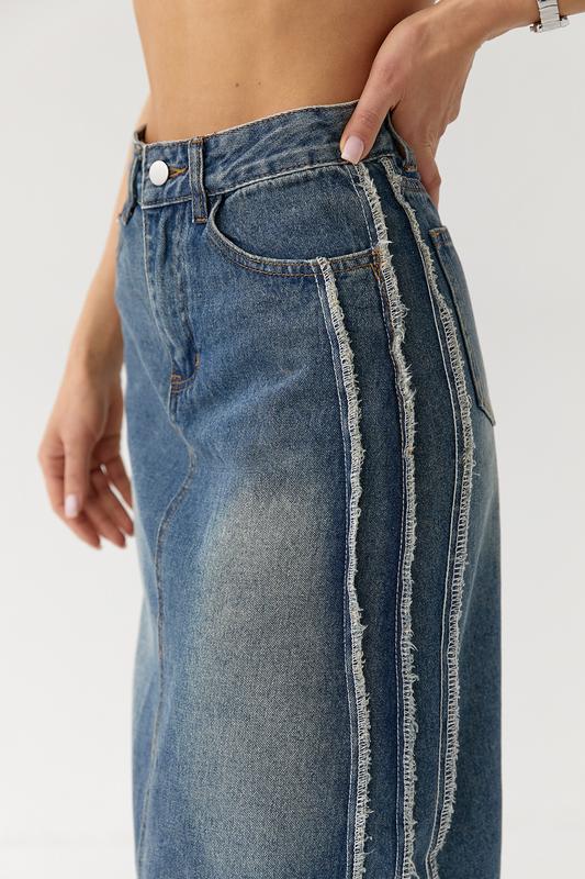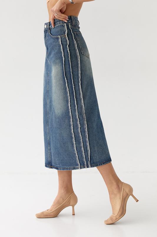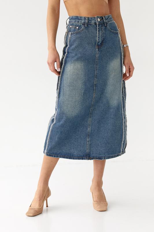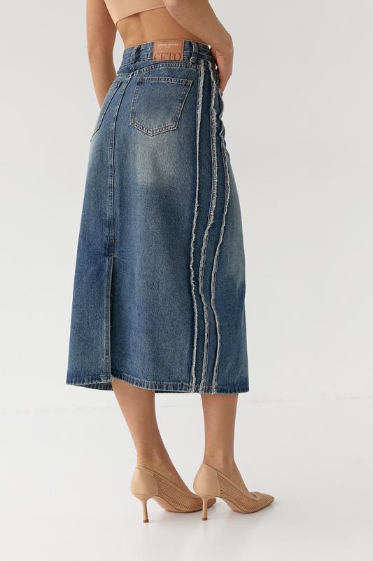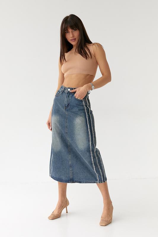 ДЖИНСОВА СПІДНИЦЯ МІДІ З РОЗРІЗОМ ЗЗАДУ