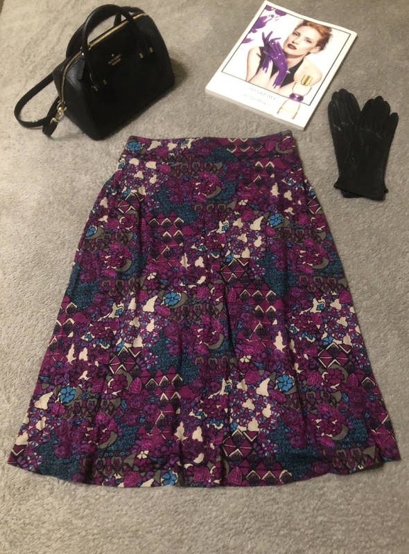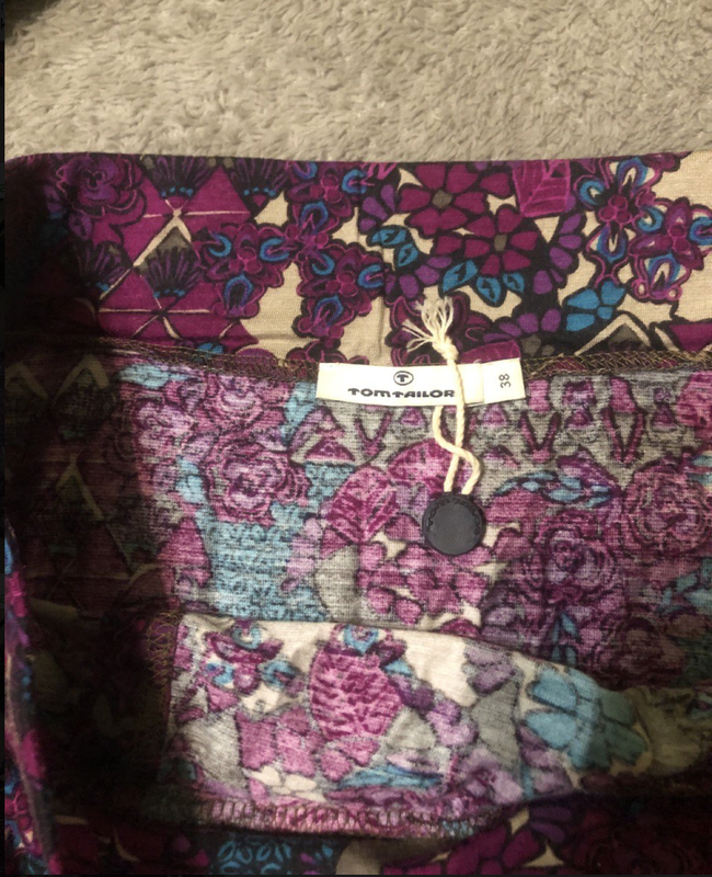 Красивого забарвлення спідниця міді від бренду Tom Tailor, пояс на гумці, стегна вільні, гарно лягає хвилями по низу, з імітацією запаху. Довжина 59 см, пояс ширина 38-50 см (гумка), стегна вільні ширина до 56 см у спокійному стані.