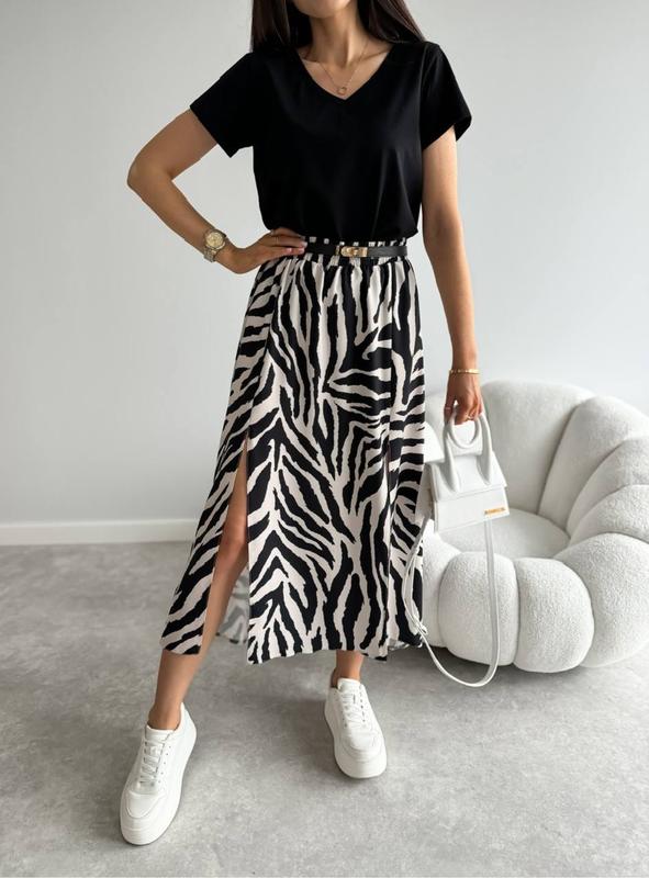 Мод 357індРозмір: 42-44, 46-48Тканина: софт Колір: чорний, бежСпідниця в анімалістичному принті, з розрізами !