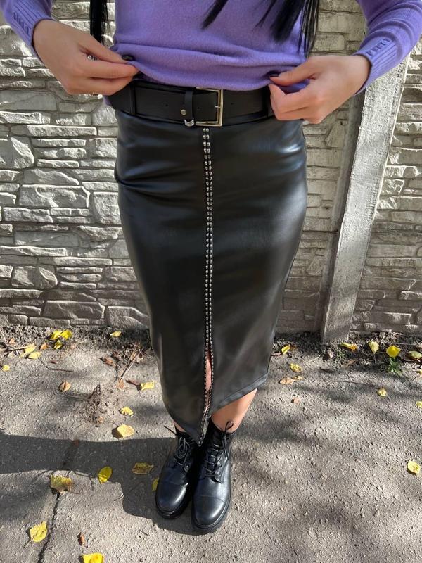 Жіноча спідниця, виконана з якісної екошкіри, дуже м яка, на вигляд наче натуральна. Розміри:42, 46, 48. 42(S): на стегна 89-93 см 46(L): на стегна 99-103 см 48(XL):на стегна 104-108 см. Можна підібрати сорочку, блузку, гольф для створення неповторного образу.