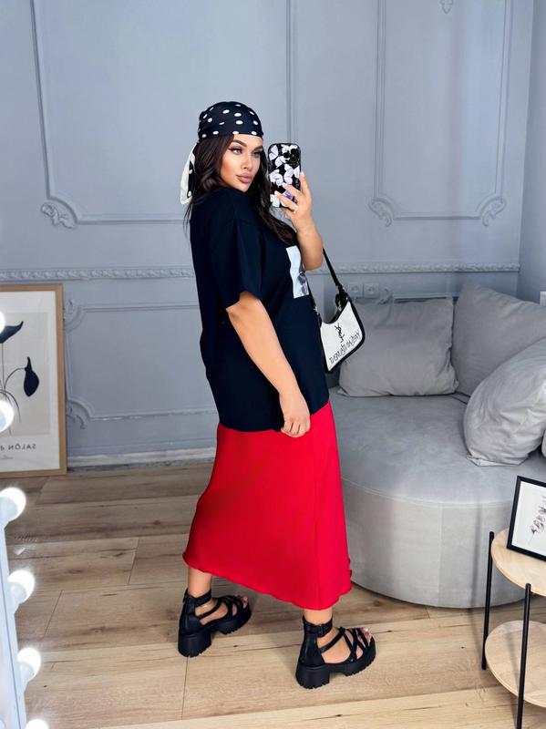 Дуже приємна до тіла. Талія на резинці по спинці та блискавка з боку!