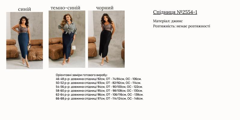 54-56 р-р: довжина спідниці 94см, ОТ - 90/100см, OC - 122см.